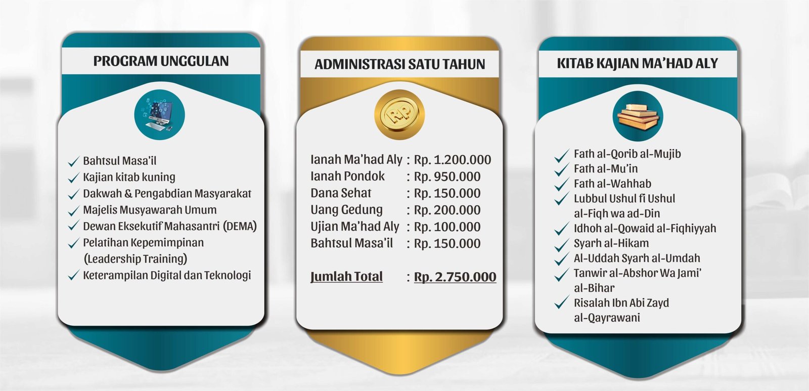 - Tempat : Kantor Ma’had Aly (Maktabah Baru 01)
